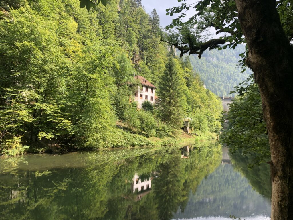 Voilà, après les pommes de terre et le jambon cuit accompagnés d’un verre de vin blanc, on peut aller se reposer dans la chambre toute en bois tandis que s’annonce l’étape de demain. Ce sera donc dès le lendemain , l’entrée et la descente dans la vallée du Doubs et ses gorges. Après le fameux saut (de 27 m) du Doubs, un autre monde débute. Ce sera surtout une palette infinie de vert que ne renierait pas le peinte Bernard Gantner.