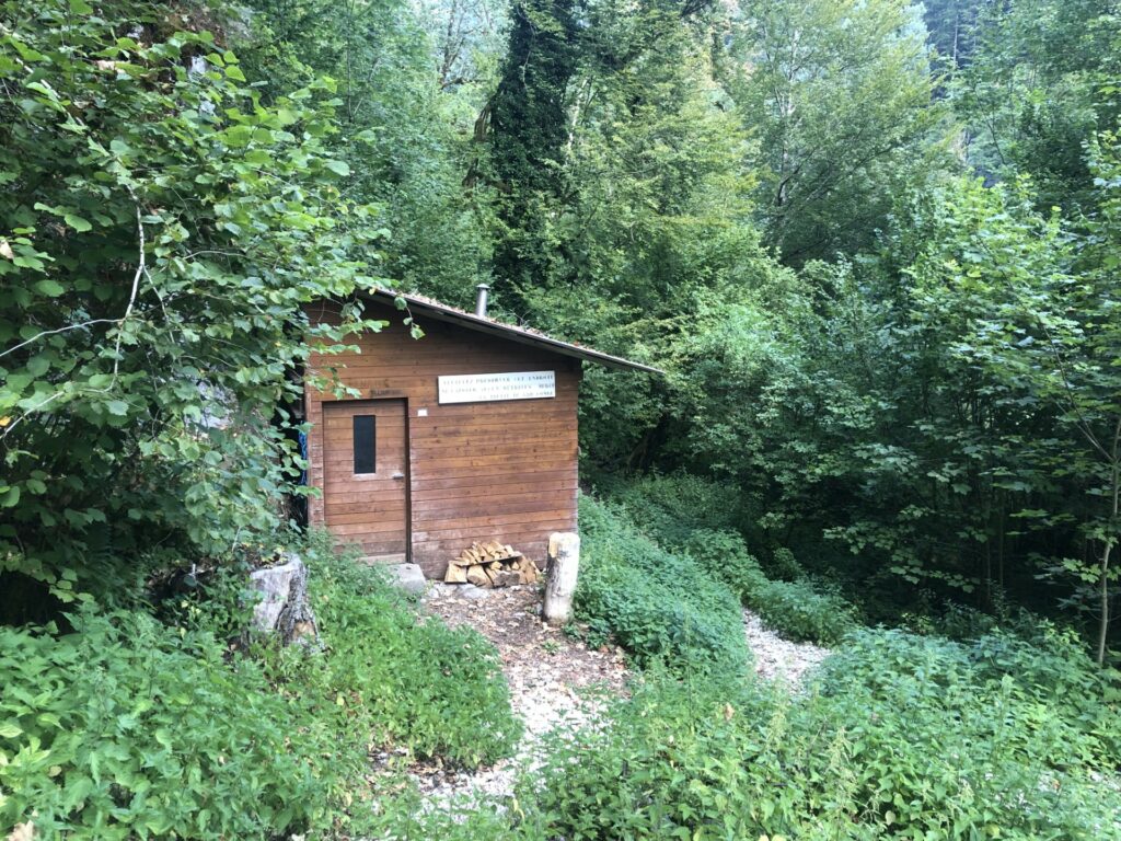 Par méconnaissance, bien sûr, on s’était dit que si peut-être cette traversée s’arrêtait-là ce ne serait pas un problème. Que nenni! La dernière partie de l’itinéraire sera tout aussi intéressante. Tout d’abord en deux jours, nous arriverons aux environs de Villers le lac. Il s’agit de sortir de Pontarlier et de marcher jusqu’à ce qu’un site nous paraisse favorable. J’avais fait quelques recherches et finalement nous nous arrêterons à la cabane de la Halte des Seignes aux gras qui nous a paru accueillante, là en cette fin d’après-midi où le panorama sur la combe fauchée, et un point d’eau (un robinet extérieur) à 300 mètres au hameau des Seignes. En fait, l’endroit est agréable, peut-être un peu trop près d’un accès voiture ce qui fait que peut-être des gens y viendront juste pour la soirée ou au dernier moment dans la soirée pour passer la nuit. Deux heures auparavant nous étions passés dans un endroit assez étonnant. L’itinéraire après le village des Alliés, et une aire de pique nique avec de l’eau non vérifiée jouait au chat et à la souris avec la frontière, remontant sur l »anticlinal au Cernet de Doubs, le sentier qui reprenait alors une piste récupérait son statut de sentier pour passer au lieu-dit la Côte du Cerf à 1200 mètres d’altitude exactement sur la frontière entre deux bâtiments qui se faisaient face avant de basculer dans la combe fauchée au sud-est en territoire suisse puis de poursuivre vers les Seignes.