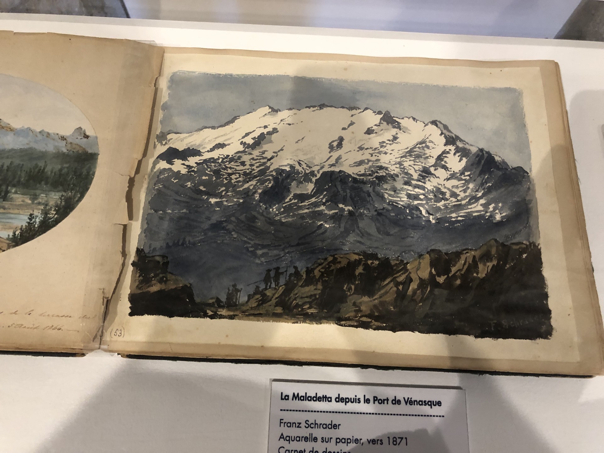 Photo : La Maladetta depuis le port de Vénasque, Aquarelle sur papier, Vers 1871, Carnet de dessin (Photo Catherine)