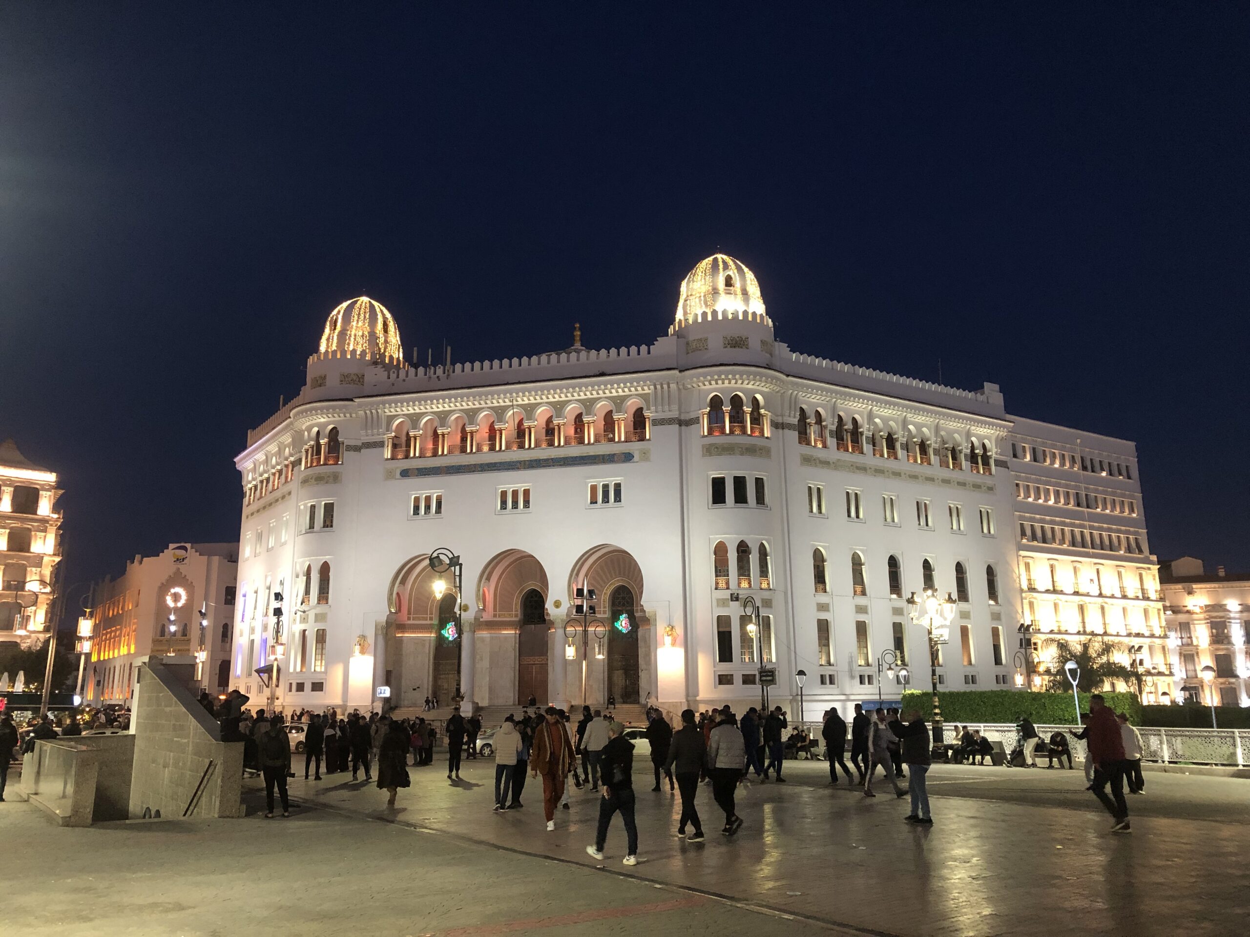 Effectivement, nous y sommes allés sans trop savoir à quoi nous attendre et deux éléments qui nous ont paru évidents c’est que la ville est très belle et que les Algérois nous ont offert un accueil vraiment des plus chaleureux. Le service dans les restaurants par exemple était chaque fois impeccable, les serveurs polis et attentionnés et puis la qualité de ce que nous y avons mangé indubitable : chorba, couscous, langue de veau, escargots sauce Yulmaz (c’est le restaurant familial, où nous sommes revenus, dans lequel nous l’avons mangé, comme beaucoup des autres plats d’ailleurs), tajine mais pas comme au Maroc, dorade, rouget, chakhchoukha, burek craquants… On pourra lire ou feuilleter à ce propos le délicieux livre Algérie gourmande, voyage culinaire dans la cuisine d’Ourida de Claire&Reno Marca et Ourida Nekkache aux éditions La Martinière. À aucun moment dans la rue, nous n’avons perçu une quelconque animosité contre nous en tant que français. Les rues du magnifique centre ville sont vivantes et sécurisées et même les promenades dans la casbah ne nous ont pas posé de problèmes. L’ambiance y est forte et particulière, car on peut souvent voir la mer, et la belle baie d’Alger au loin, au-delà des terrasses des toits. Mais elle est dans un tel état de délabrement, impressionnant, qu’il serait réellement temps que les autorités fassent quelque chose, d’autant plus qu’elle est un symbole de la période d’avant la colonisation. On ne se lassera pas de passer à proximité de la mosquée Ketchaoua, successivement remaniée, dès le 18ème sous le gouvernement du Dey (titre des régents d’Alger sous domination ottomane du 17ème siècle à 1830), puis pendant la colonisation française, transformée à l’occasion en cathédrale (Saint-Philippe) avant de revenir au culte musulman. Visiter une si belle ville, sans rencontrer trop (ou très peu) de touristes, avait aussi quelque chose de décalé et d’hyper agréable. Sans faire l’apologie du régime colonial (c’est impossible!), on ne peut tout de même que constater l’impressionnante beauté de l’ensemble urbain construit à ce moment-là. Cela a quelque chose d’assez irréel et décalé car bien sûr et heureusement les algériens se le sont approprié avec la vie commerçante, des boutiques et restaurants, terrasses. On se promène tête en l’air bien souvent, ou le regard curieux qui passe derrière les grandes portes d’entrée des immeubles de type haussmanien pour observer les cages d’escalier ou les autres escaliers extérieurs dans cette ville à plusieurs niveaux, adossée à la colline. On pourra trouver l’ancienne grande poste magnifique et majestueuse. En remontant la rue Didouche, du nom du récit éponyme de Djadouida Ibnou-Zekri, notre oeil jouera avec ce long défilé de façades.